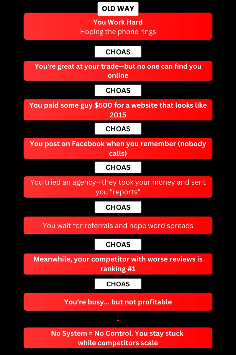 The result? Burnout. Inconsistent revenue. Watching competitors grow while he worked twice as hard.